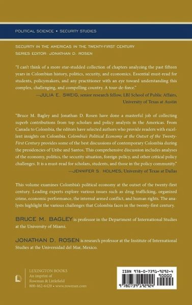 In this volume a group of leading experts examines Colombia's political economy at the beginning of the twenty-first century, exploring various issues such as, drug trafficking, organized crime, economic performance, the internal armed conflict, and human rights. The experts highlight the various challenges that Colombia faces today.