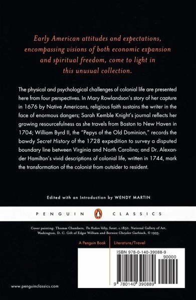 Four journeys by early Americans Mary Rowlandson, Sarah Kemble Knight, William Byrd II, and Dr. Alexander Hamilton recount the vivid physical and psychological challenges of colonial life. Essential primary texts in the study of early American cultural life, they are now conveniently collected in a single volume. For more than seventy years, Penguin has been the leading publisher of classic literature in the English-speaking world. With more than 1,700 titles, Penguin Classics represents a global bookshelf of the best works throughout history and across genres and disciplines. Readers trust the series to provide authoritative texts enhanced by introductions and notes by distinguished scholars and contemporary authors, as well as up-to-date translations by award-winning translators.
