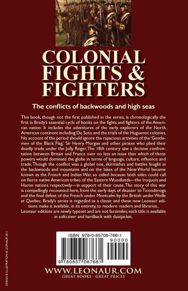 The conflicts of backwoods and high seas This book, though not the first published in the series, is chronologically the first in Brady's essential cycle of books on the fights and fighters of the American nation. It includes the adventures of the early explorers of the North American continent including De Soto and the trials of the Huguenot colonies. No account of the period should ignore the rapacious activities of the 'Gentlemen of the Black Flag,' Sir Henry Morgan and other pirates who plied their deadly trade under the Jolly Roger. The 18th century saw a decisive confrontation between Britain and France over no less an issue than which of those powers would dominate the globe in terms of language, culture, influence and trade. Though the conflict was a global one, skirmishes and battles fought in the backwoods and mountains and on the lakes of the New World became known as the French and Indian War, so called because both sides could call on fierce native American tribes of the Eastern Woodlands-the Iroquois and Huron nations respectively-in support of their cause. The story of this war is compellingly recounted here, from the early days of disaster to Ticonderoga and the final defeat of the French under Montcalm by the British under Wolfe at Quebec. Brady's series is regarded as a classic and these new Leonaur editions make it available, in its entirety, to modern readers and libraries. Leonaur editions are newly typeset and are not facsimiles; each title is available in softcover and hardback with dustjacket.