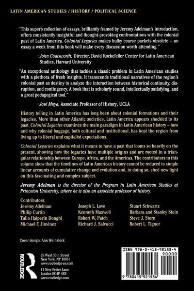 "This superb collection of essays, brilliantly framed by Jeremy Adelman's introduction, offers consistently insightful and thought-provoking confrontations with the colonial past of Latin America. Colonial Legacies makes bulky course packets obsolete -- an essay a week from this book will make every discussion worth attending." -- John Coatsworth, Director, David Rockefeller Center for Latin American Studies, Harvard University
