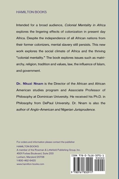 Intended for a broad audience, Colonial Mentality in Africa explores the lingering effects of colonization in present day Africa. Despite the independence of all African nations from their former colonizers mental slavery still persists. This new work explores the social climate of Africa and the thriving "colonial mentality". The book explores issues such as matriarchy, religion, tradition and values, law, the influence of Islam, and government.