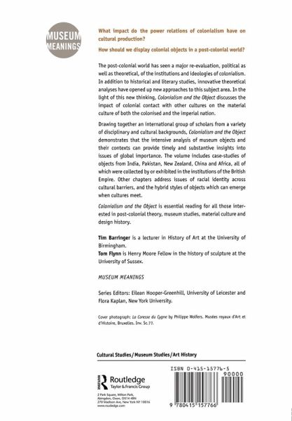 Colonialism and the Object is essential reading for all those interested in post-colonial theory, museum studies, material culture and design history.