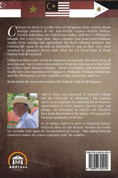 Colonies in Ruins is a collection of intriguing short-stories about foreign colonies of the Asia-Pacific region-British Malaya, French Indochina, the Dutch East Indies, and the US Philippine Islands. For a very long time, these colonies had generated fabulous wealth from mining and agriculture for their colonial masters, but colonial life came to an end on December 8, 1941 as they were each attacked by Japanese forces soon after the US Naval Base at Pearl Harbor was devastated. Following three years of harsh Japanese occupation, the clear focus of local people was to gain independence from foreign powers that tried to reclaim their former colonies. Hard-won battles and negotiations finally led to the emergence of Singapore, Malaysia, Vietnam, Indonesia, and the Philippines as new republics in the 1950s, 60s, and 70s. Read about the men and women who helped make it all happen.