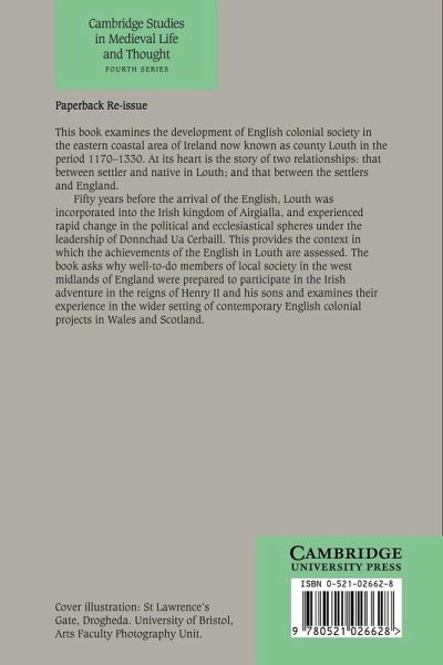 This book examines the development of English colonial society in the eastern coastal area of Ireland now known as county Louth, in the period 1170-1330. At its heart is the story of two relationships: that between settler and native in Louth, and that between the settlers and England. An important part of the story is the comparison with parts of Britain which witnessed similar English colonization. Fifty years before the arrival of the English, Louth was incorporated into the Irish kingdom of Airgialla, experiencing rapid change in the political and ecclesiastical spheres under its dynamic ruler Donnchad Ua Cerbaill. The impact of this legacy on English settlement is given due prominence. The book also explores the reasons why well-to-do members of local society in the West Midlands of England in the reigns of Henry II and his sons were prepared to become involved in the Irish adventure.