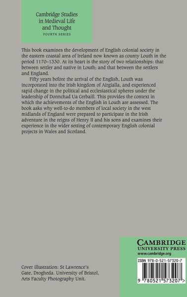 This book examines the development of English colonial society in the eastern coastal area of Ireland now known as county Louth, in the period 1170-1330. At its heart is the story of two relationships: that between settler and native in Louth, and that between the settlers and England. An important part of the story is the comparison with parts of Britain which witnessed similar English colonization. Fifty years before the arrival of the English, Louth was incorporated into the Irish kingdom of Airgialla, experiencing rapid change in the political and ecclesiastical spheres under its dynamic ruler Donnchad Ua Cerbaill. The impact of this legacy on English settlement is given due prominence. The book also explores the reasons why well-to-do members of local society in the West Midlands of England in the reigns of Henry II and his sons were prepared to become involved in the Irish adventure.