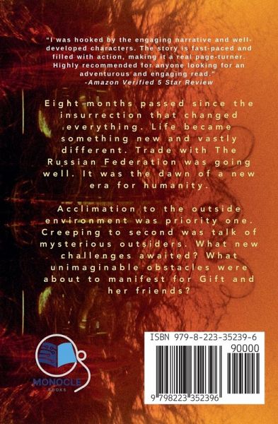 Life has become something new and vastly different. Gift and her friends have begun the exciting adventure of exploring the wondrous outside. A breathable-though not quite fully livable-environment beyond the domes and corridors. Communication and regular trade with The Russian Federation was going well. The New Europa colony saw the dawn of a new era for humanity. Acclimation to the outside environment was priority one. Creeping to second was talk of mysterious outsiders. What new challenges awaited? What unimaginable obstacles were about to manifest for Gift and her friends?