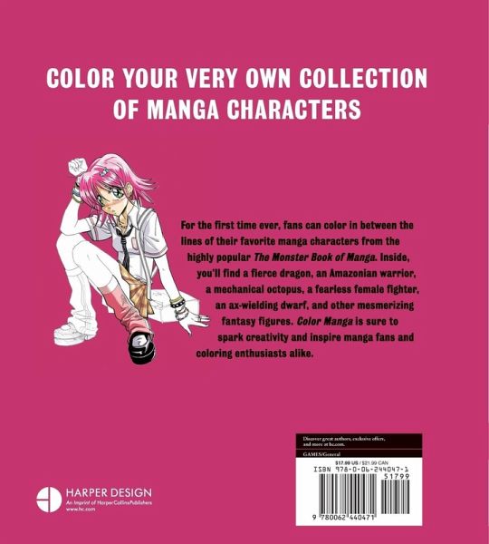 Color your very own collection of manga characters For the first time ever, fans can color in between the lines of their favorite manga characters from the highly popular The Monster Book of Manga . Inside, you'll find a fierce dragon, an Amazonian warrior, a mechanical octopus, a fearless female fighter, an ax-wielding dwarf, and other mesmerizing fantasy figures. Color Manga is sure to spark creativity and inspire manga fans and coloring enthusiasts alike.