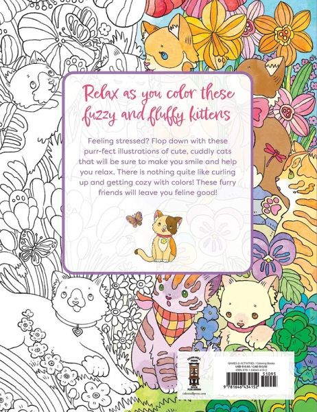 Unwind and express your creativity with the purr-fect designs in Color Me Kittens. Relax in the world of fuzzy kittens. This adorable collection features scenes all cat owners will recognize. Cat lovers and artists alike will enjoy bringing these cuddly felines to life. These detailed illustrations allow you to practice mindfulness and will keep you busy for hours. Take advantage of the meditative benefits of coloring with kittens rolling in yarn, kittens stretched out in the sun, kittens in teacups, and more. Color Me Kittens includes: - 50 coloring pages designed to help you unwind - Designs suitable for all skill levels, with a range of selections for beginners and experienced artists - One-sided pages so your art doesn't bleed through to the other side - Anxiety-reducing benefits to help lift your mood and help you practice mindfulness Whether you need a calming atmosphere, want to unwind at the end of the day, are trying a new hobby, or just love coloring, there is something here for everyone. Forget your worries as you explore these creative scenes. You can use colored pencils, markers, gel pens, watercolors, crayons, or whatever tool you want to fill in these designs. Let your imagination run wild with Color Me Kittens.