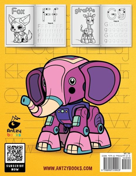 In this book, we've combined the magic of coloring with the art of writing to create a dynamic and engaging learning experience for kids ages 3 and up. Learning the Alphabet: With our carefully crafted pages, you'll learn to write each letter, in uppercase and lowercase. Practice, play, and become a confident writer! Meet the Robot Animals: As you embark on your alphabet adventure, you'll meet charming robot animals, each starting with the same letter you're learning. For example, the letter "A" introduces you to the "Ant." You'll find a delightful robot ant, along with the word "ant" in big bubble letters for you to color. We believe that learning should be a joyous experience. That's why we've filled this book with playful illustrations and interactive coloring pages. Not only will you master the alphabet, but you'll also have a blast doing it! We're excited to have you as part of our learning community. Let's explore, create, and learn together. Happy tracing and coloring!