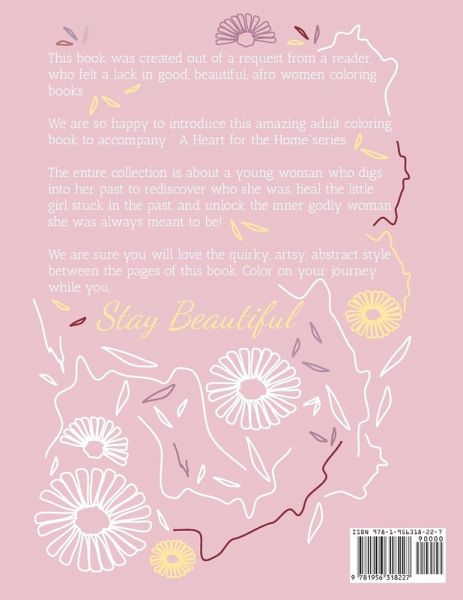 This book was created out of a request from a reader, who felt a lack in good, beautiful, afro women coloring books. We are so happy to introduce this amazing adult coloring book to accompany " A Heart for the Home" series. The entire collection is about a young woman who digs into her past to rediscover who she was, heal the little girl stuck in the past, and unlock the inner godly woman she was always meant to be! We are sure you will love the quirky, artsy, abstract style between the pages of this book. Color on your journey while you, Stay Beautiful