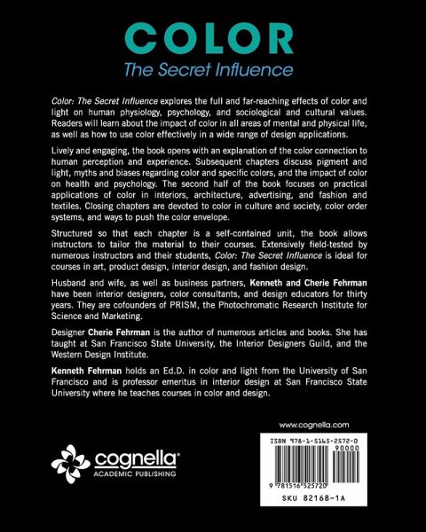 Color: The Secret Influence explores the full and far-reaching effects of color and light on human physiology, psychology, and sociological and cultural values. Readers will learn about the impact of color in all areas of mental and physical life, as well as how to use color effectively in a wide range of design applications. Lively and engaging, the book opens with an explanation of the color connection to human perception and experience. Subsequent chapters discuss pigment and light, myths and biases regarding color and specific colors, and the impact of color on health and psychology. The second half of the book focuses on practical applications of color in interiors, architecture, advertising, and fashion and textiles. Closing chapters are devoted to color in culture and society, color order systems, and ways to push the color envelope. Structured so that each chapter is a self-contained unit, the book allows instructors to tailor the material to their courses. Extensively field-tested by numerous instructors and their students, Color: The Secret Influence is ideal for courses in art, product design, interior design, and fashion design. Husband and wife, as well as business partners, Kenneth and Cherie Fehrman have been interior designers, color consultants, and design educators for thirty years. They are cofounders of PRISM, the Photochromatic Research Institute for Science and Marketing. Designer Cherie Fehrman is the author of numerous articles and books. She has taught at San Francisco State University, the Interior Designers Guild, and the Western Design Institute. Kenneth Fehrman holds an Ed.D. in color and light from the University of San Francisco and is professor emeritus in interior design at San Francisco State University where he teaches courses in color and design.