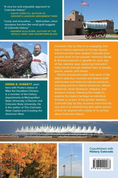 Copublished with History Colorado Colorado Day by Day is an engaging, this-day-in-history approach to the key figures and forces that have shaped Colorado from ancient times to the present. Historian Derek R. Everett presents a vignette for each day of the calendar year, exploring Colorado's many facets through distilled tales of people, places, events, and trends. Entries incorporate tales from each of the state's sixty-four counties and feature both well-known and obscure cultural moments, including events in Native American, African American, Asian American, Hispano, and women's history. Allowing the reader to explore the state's heritage as individual threads or as part of the greater tapestry, Colorado Day by Day recovers much lost history and will be an entertaining and useful source of lore for anyone who enjoys or is curious about Colorado history.