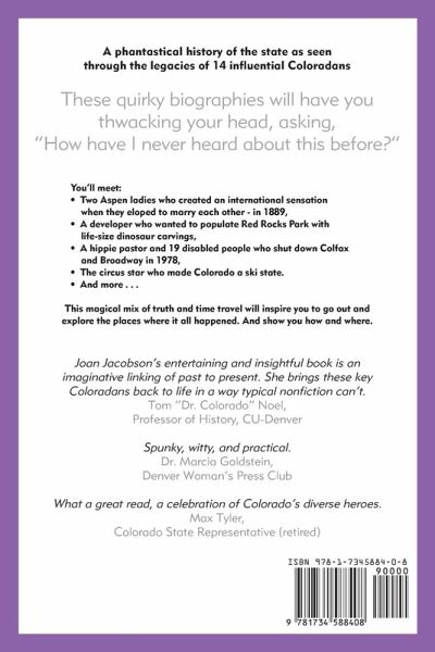 WINNER of the 2022 Colorado Authors League Historical Nonfiction Award ¿A phantastical history of Colorado as seen through the legacies of 14 influential Coloradans:These quirky biographies will have you thwacking your head, asking, "How have I never heard about this before?" You'll meet: Two Aspen ladies who created an international sensation when they eloped to marry each other - in 1889, A developer who wanted to populate Red Rocks Park with life-size dinosaur carvings, A hippie pastor and 19 disabled people who shut down Colfax and Broadway in 1978, The circus star who made Colorado a ski state, And more! This magical mix of truth and time travel will inspire you to go out and explore the places where it all happened. And show you how and where.
