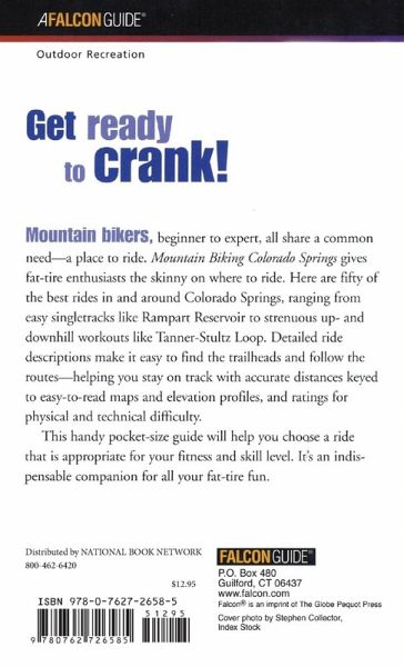Mountain bikers, beginner to expert, all share a common need--a place to ride. Mountain Biking Colorado Springs gives fat-tire enthusiasts the skinny on where to ride. Here are 50 of the best rides around Colorado Springs, Woodland Park, Cañon City, San Isabel National Forest, and Wet Mountain Valley, ranging from easy road rides to smooth singletrack and bravado-busting boulder fields. The ride descriptions make it easy to find the trailheads and follow the routes--helping them stay on track with accurate distances keyed to detailed maps and ratings for physical and technical difficulty. This handy pocket-sized guide will help mountain bikers choose a ride that is appropriate for their fitness and skill levels and will be an indispensable companion for all their fat-tire fun.