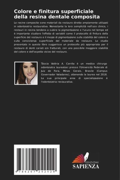 Le resine composite sono materiali da restauro diretto ampiamente utilizzati in odontoiatria restaurativa. Nonostante la loro semplicità nell'uso clinico, i restauri in resina tendono a subire la pigmentazione e l'usura nel tempo ed è importante studiare l'effetto di variabili come il protocollo di finitura della superficie del restauro o il mezzo di pigmentazione sulla stabilità del colore e sulla consistenza superficiale del materiale da restauro. Lo studio presentato in questo libro suggerisce un protocollo più appropriato per il restauro di denti cariati e/o fratturati, con una possibile maggiore stabilità del colore e dell'aspetto visivo del restauro.