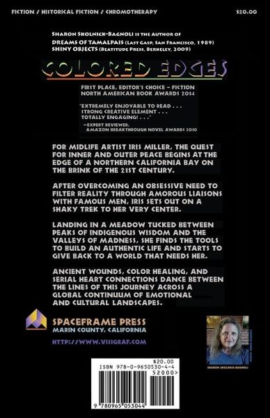 Colored Edges traces the stages of word artist Iris Miller's quest for inner peace and world peace. At first obsessed with mirror images of celebrity, she finally harnesses her own power. Inherited wounds, heart connections, and color healing entwine to weave a Möbius carpet she learns to ride on spectral waves across the globe.
