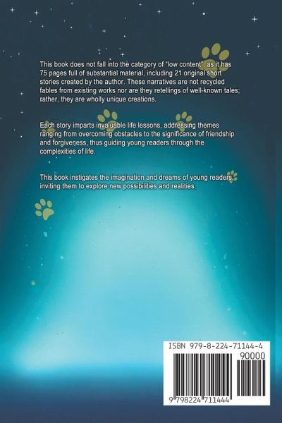 This book has 74 pages full of substantial material, including 21 original short stories created by the author. These narratives are not recycled fables from existing works nor are they retellings of well-known tales; rather, they are wholly unique creations. Each story imparts invaluable life lessons, addressing themes ranging from overcoming obstacles to the significance of friendship and forgiveness, thus guiding young readers through the complexities of life.