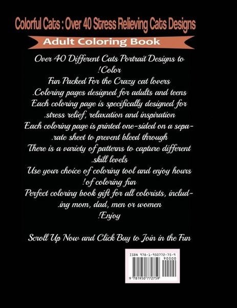 Over 40 Different Cats Portrait Designs to Color! Fun Packed For the Crazy cat lovers Coloring pages designed for adults and teens. Each coloring page is specifically designed for stress relief, relaxation and inspiration. Each coloring page is printed one-sided on a separate sheet to prevent bleed through. There is a variety of patterns to capture different skill levels. Use your choice of coloring tool and enjoy hours of coloring fun! Perfect coloring book gift for all colorists, including mom, dad, men or women. Enjoy! Scroll Up Now and Click Buy to Join in the Fun