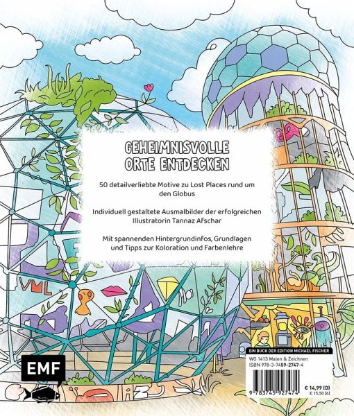 Noch nie dagewesene Ausmalbilder: 50 Lost Places aus der ganzen Welt ausmalenWeltreise meets Nature: Individuell gestaltete Ausmalbilder von der Illustratorin Tannaz AfcharMit Hintergrundinfos zu den Orten und einem kompakten Grundlagenteil mit hilfreichen Informationen zum Kolorieren