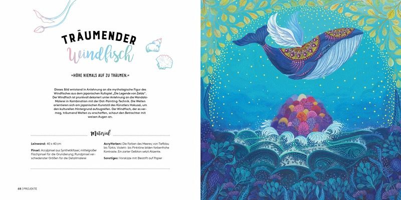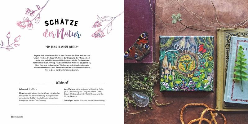 Im kompakten Grundlagenteil werden Materialien und Techniken vorgestellt. Mit diesem Wissen gelingen die nachfolgenden Motive garantiert. Die Motive sind von der Natur inspiriert und entführen in Traumlandschaften. Leuchtende Farben sorgen für schöne Kontraste innerhalb der Bilder und lassen die Kunstwerke besonders strahlen. Die Kombination aus Acrylmalerei und Dot-Painting sorgt für eine spannende Gestaltung. Schritt für Schritt werden die Motive erklärt und Tipps und Tricks der Autorin sorgen für einfaches Nacharbeiten.