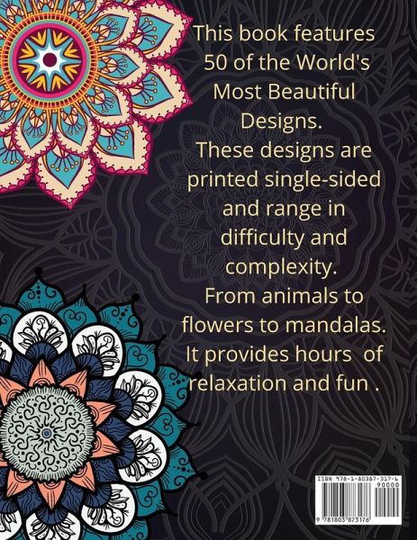 Unleash your inner creativity and attention to details with 50 designs meant to relax your body and soul. Color your new mandala Book to help reduce stress and anxiety while creating beautiful designs! Free your mind of any worries. Take a break from the fast-paced stresses of your own life to unwind with some good music and symmetric designs. Coloring has been shown to aid in relaxation. Each mandala is a journey inward toward the center of the geometric figure. Mandalas have been used for decades to depict the cosmos, either physically or symbolically. Their structure mirrors that of the universe or even life itself. Get this book if you like mandalas, and you want to achieve happiness and a mindful emotional state. Our Mandala coloring book features:This volume contains full page mandala designs, so you can fill your whole page with color. Each colored page is printed on a separate page to avoid bleed trough. Suitable for markers, gel pens, coloring pencil, fine liners, water colors. An assortment of simple and intricate designs to accommodate every skill level. Single sided pages allow you to remove the finished artwork for framing or to use as you please. Large 8.5 x 11 format professional quality designs. 50 Designs a total of 106 pages. &a