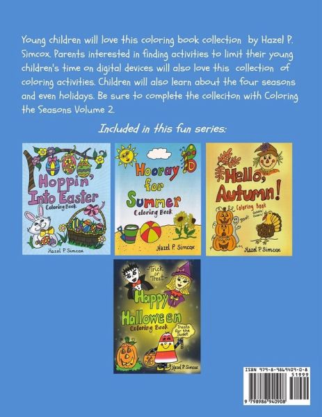 Young children will love this coloring book collection by Hazel P. Simcox. Parents interested in finding activities to limit their young children's time on digital devices will also lover this collection of coloring activities. Children will also learn about the four seasons and even holidays. Be sure to complete the collection with Coloring the Seasons Volume 2.