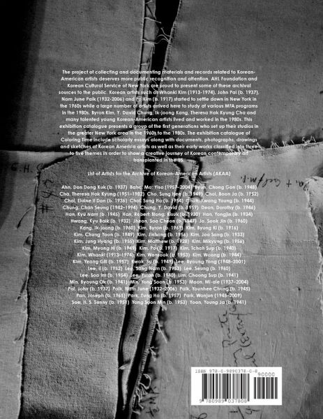 AHL Foundation and Korean Cultural Service of New York are proud to present some materials from the Archive of Korean-American Artists (AKAA). Korean artists such as Whanki Kim (1913-1974), John Pai (b. 1937), Nam June Paik (1932-2006) and Po Kim (b. 1917) started to settle down in New York in the 1960s while a large number of artists arrived here to study at various MFA programs in the 1980s. Byron Kim, Y. David Chung, Ik-joong Kang, Theresa Hak Kyung Cha and many talented young Korean-American artists lived and worked in New York in the 1980s. This exhibition catalogue presents a group of the first generations who set up their studios in the greater New York area in the 1960s to the 1980s. This exhibition catalogue of Coloring Time includes scholarly essays along with documents, photographs, drawings, and sketches of Korean-American artists as well as their early works classified into five themes in order to show a creative journey of Korean contemporary art transplanted in the US.