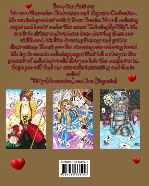 Take a trip down the rabbit hole for a magical adventure of coloring the best-known and most popular stories of all time. Inside this book you will meet such beloved and unique characters as Alice, the Mad Hatter, the Queen of Hearts, the White Rabbit, Tweedledum and Tweedledee and more. The illustrations were drawn by Alexandra Chebunina and Evgenia Chebunina (ColoringByKitty) and taken from their PDF book "Alice in Wonderland". This book contains 24 coloring pages (20 line art versions + 3 bonus grayscale versions). Each page is one-sided. We recommend using pencils, soft pastel, it is not suitable for wet media such as watercolors. However, if you are using markers use sheet of card under the page you are coloring so it won`t bleed through. Page size is a large 8 x 10 inches high quality paper (105 GSM).