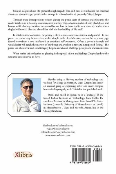 Unique insights about life gained through tragedy, loss, and new love influence the enriched views and distinctive perspectives that emerge in this collection of poems by Vijay Chopra. Through these introspections written during the poet's years of sorrows and pleasures, the reader is taken on a thinking man's sensitive journey. The collection is dotted with playfulness and humor while sharing emotions devastated by lost love or drenched in new romance and at times tingled with social bias and absurdities with the inevitability of life itself. In this first-time collection, the poetry is often tender; sometimes intense and painful. In one poem the reader may be overtaken with a simple smile of satisfaction, and on the very next page forced to confront a new intellectual or emotional self-awareness. Often, a poem in its style and word choice will reach the marrow of our being and awaken a new and unexpected feeling. The poet's use of colorful and solid imagery help to enrich and challenge perceptions and sensitivities. What makes this collection so pleasing is the special vision and feelings Chopra lends to the universal emotions we all have.