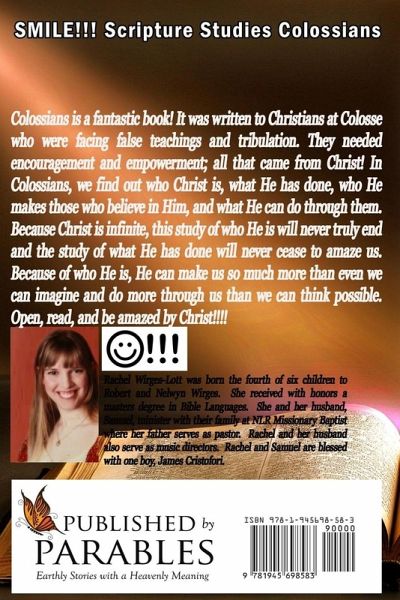 Colossians is a fantastic book! It was written to Christians at Colosse who were facing false teachings and tribulation. They needed encouragement and empowerment; all that came from Christ! In Colossians, we find out who Christ is, what He has done, who He makes those who believe in Him, and what He can do through them. Because Christ is infinite, this study of who He is will never truly end and the study of what He has done will never cease to amaze us. Because of who He is, He can make us so much more than even we can imagine and do more through us than we can think possible. Open, read, and be amazed by Christ!!!!