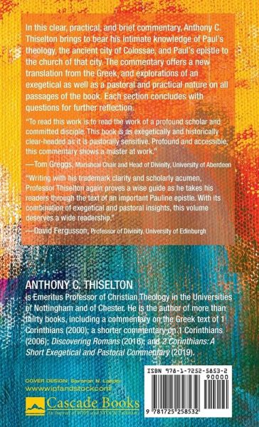In this clear, practical, and brief commentary, Anthony Thiselton brings to bear his intimate knowledge of Paul's theology, the ancient city of Colossae, and Paul's epistle to the church of that city. The commentary offers a new translation from the Greek, and explorations of an exegetical as well as a pastoral and practical nature on all passages of the book. Each section concludes with questions for further reflection.