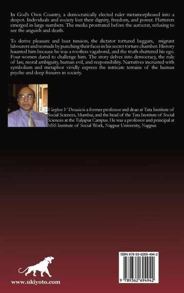 In God's Own Country, a democratically elected ruler metamorphosed into a despot. Individuals and society lost their dignity, freedom, and power. Flatterers emerged in large numbers. The media prostrated before the autocrat, refusing to see the anguish and death. To derive pleasure and bust tension, the dictator tortured beggars, migrant labourers and nomads by punching their faces in his secret torture chamber. History haunted him because he was a rootless vagabond, and the truth shattered his ego. Four women dared to challenge him. The story delves into democracy, the rule of law, moral ambiguity, human evil, and responsibility. Narratives incrusted with symbolism and metaphor vividly express the intricate terrains of the human psyche and deep fissures in society.
