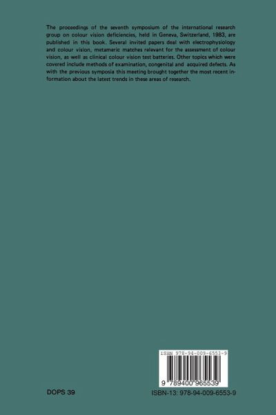 1. Obituaries.- A tribute to Louise L. Sloan.- Dr Oskar Neubauer.- 2. Electrophysiology and Colour Vision.- Electrophysiology of color vision. I. Cellular level (invited paper).- Electrophysiology of colour vision. II. Studies on colour vision by means of the electroretinogram and the visually evoked cortical potential: a review (invited paper).- ERG indices of color vision variations in monkeys.- Correlates between chromatic electrophysiological recordings and chromatic psychophysical functions in normal and abnormal observers.- Visual evoked potentials and colour pattern stimulations.- Spectral response pattern of ERG recorded with scanning method in congenital colour defectives.- 3. Metameric Matches Relevant for Assessment of Colour Vision.- Metameric matches relevant for assessment of color vision. I. Theoretical considerations (invited paper).- Metameric matches relevant for assessment of color vision. II. Practical aspects (invited paper).- Analysis of variance in anomaloscope matches.- Color matches on large fields, changes with retinal area stimulated or with duration of presentation.- Retinal distribution of macular pigment.- Brightness-luminance discrepancy in the frame of colour vision deficiencies.- Clinical colorimetric examinations in the purple.- Dichromatic and anomalous trichromatic colour vision examined with small and large field matches by means of the projection anomaloscope.- Influences of variation in lenticular and macular pigmentation on dichromatic neutral points.- Rayleigh equation in acquired color vision defects.- 4. Clinical Colour Vision Test Batteries.- Clinical color vision examination (invited paper).- Principles of colour vision test battery selection.- Acquired defects of colour discrimination statistically evaluated through abattery of tests.- The contribution of the City University test (1st and 2nd editions) in a clinical test laboratory.- 5. Methods of Examination.- New pseudoisochromatic plates for acquired color vision defects.- Pseudoisochromatic charts in acquired dyschromatopsia.- Influence of some factors on not-typical responses to three tests of color vision in children.- Comments on the use of the Standard Pseudoisochromatic plates and the New Color Test of Lanthony.- The effect of age on performance on the Panel D-15 and desaturated D-15: a quantitative evaluation.- An analysis of the Farnsworth-Munsell 100-Hue test.- On the comparison of monocular and binocular 100-Hue responses.- Validity of different contrast tests in glaucoma.- Saturation contrasts: clinical application potential.- Psychophysical flicker threshold in congenital colour vision deficiencies: clinical and ergophthalmological aspects.- A clinical evaluation of the 'OSCAR' color vision set.- Value of the Rodenstock Farbentestscheibe 3040.173 for the diagnosis of congenital colour vision defects.- A revised three-light test.- A new pocket anomaloscope.- Presentation of a design to measure the McCollough effect.- 6. Congenital Defects.- Spatial summation in dichromats.- Microspectrophotometric and psychophysical results for the same deuteranopic observer.- Mesopic deuteranopic vision with a large observation field.- Achromatopsia and combination defects of protan, deutan and tritan genes.- 7. Acquired Defects.- The three color vision mechanisms in different field sizes in acquired color vision defects.- Clinical application of the transient tritanopia effect.- Saturation discrimination in acquired colour vision deficiencies on the tritanopic confusion line.- Colour vision in a case of unilateral nuclearcataract.- Color discrimination (100-Hue test) after successful surgical treatment of retinal detachment.- Retinal drusen and colour vision.- A quantitative assessment of colour discrimination in normal vision and senile macular degeneration using some colour confusion tests.- Colour vision in relation to other visual functions in the presence of slight macular degeneration.- Colour vision in young diabetics.-