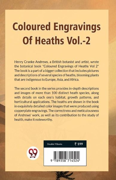Henry Cranke Andrews, a British botanist and artist, wrote the botanical book "Coloured Engravings of Heaths Vol 2" The book is a part of a bigger collection that includes pictures and descriptions of several species of heaths, blooming plants that are indigenous to Europe, Asia, and Africa. The second book in the series provides in-depth descriptions and images of more than 100 distinct heath species, along with details on each one's habitat, growth patterns, and horticultural applications. The heaths are shown in the book in exquisitely detailed color images that were produced using copperplate engravings. The correctness and meticulousness of Andrews' work, as well as its contribution to the study of health, make it noteworthy.