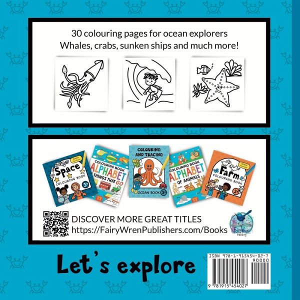 Let your child's creativity flow with this farm colouring book Full of great pictures about ocean life to fill with colour. Whales, sharks, turtles, sunken ships and much more. Also includes fun facts to learn more about life in the ocean! Part of a Fairywren colouring book series designed for preschool children from 3 years old. A great learning and colouring experience. 30 Big Ocean Colouring Pictures, whales, sharks, turtles, sunken ships and many more 30 Fun Facts Images designed for children age 3+ Large Square Format - 22cm by 22cm Colouring nurtures creativity, develops motor skills and encourages patience A great gift for friends or family If you're looking for a great quality, fun colouring book about life in the ocean for a child aged 3+ then this colouring book is for you!