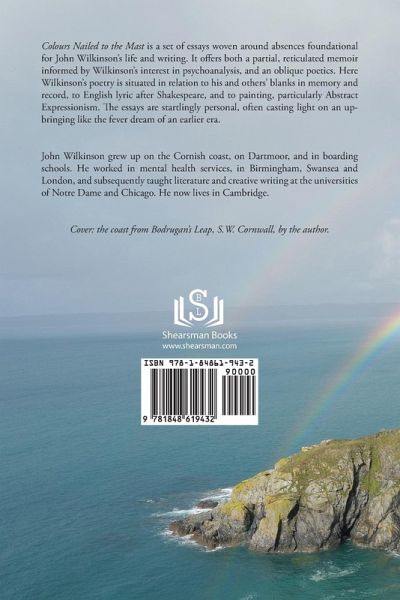 Colours Nailed to the Mast is not so much a memoir as an immemoir, fretting at traces, gaps and losses that start to expose absence as the productive heart of my poetic life; for with poetry I have needed to fill in the absence, not by attempted retrievals as in some of these essays, but by linguistic analogues that aspire to life, golems if you like. The unexpected absence of the final step. At best the poems emerge from my immemory into independence, even if their familial resemblance may be obvious. More so than some of what I seem to recall here, sharing the dream quality that has most intrigued me - a conviction my dreams have been annexed by another consciousness with a history and range of knowledge I cannot claim.