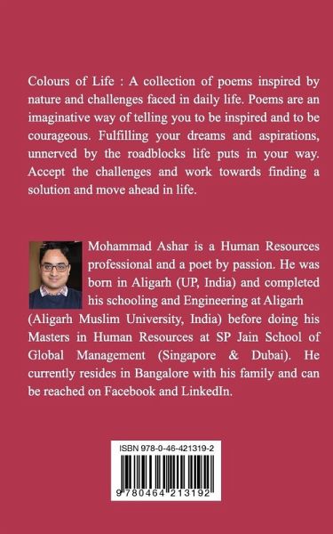 Colours of Life is a collection of poems inspired by nature and challenges faced in daily life. Poems are an imaginative way of telling one to be inspired and to be courageous. Fulfilling one's dreams and aspirations, unnerved by the roadblocks life puts in the way. Accept the challenges and work towards finding a solution and move ahead in life.