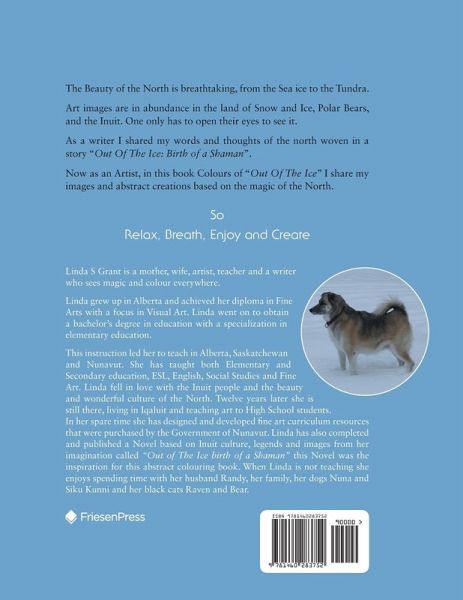 The Beauty of the North is breathtaking, from the Sea ice to the Tundra. Art images are in abundance in the land of Snow and Ice, Polar Bears, and the Inuit. One only has to open their eyes to see it. As a writer I shared my words and thoughts of the north woven in a story "Out Of The Ice: Birth of a Shaman". Now as an Artist, in this book Colours of "Out Of The Ice" I share my images and abstract creations based on the magic of the North. So Relax, Breath, Enjoy and Create
