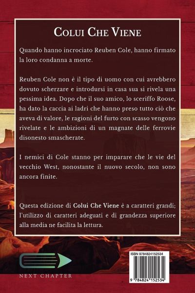 Quando hanno incrociato Reuben Cole, hanno firmato la loro condanna a morte. Reuben Cole non è il tipo di uomo con cui avrebbero dovuto scherzare e introdursi in casa sua si rivela una pessima idea. Dopo che il suo amico, lo sceriffo Roose, ha dato la caccia ai ladri che hanno preso tutto ciò che aveva di valore, le ragioni del furto con scasso vengono rivelate e le ambizioni di un magnate delle ferrovie disonesto smascherate. I nemici di Cole stanno per imparare che le vie del vecchio West, nonostante il nuovo secolo, non sono ancora finite. Edizione A Caratteri Grandi