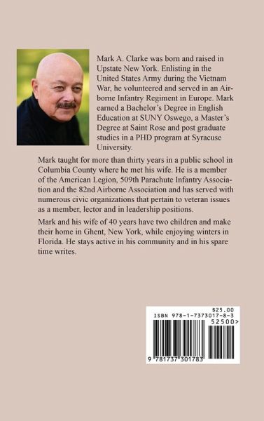 Mark spends his time in Columbia County, New York and Volusia County, Florida. He enlisted in the Army during the Vietnam War and served in an Airborne Infantry Regiment in Europe. Mark has earned an AA in liberal arts, BA and MS in English Education with post graduate studies in a PHD program at Syracuse University. He studied in England, where he met and discussed the works of British author's like Kingsley Amis, Ruth Fainlight and Gordon Williams. Mark published his first book in June 2021, Columbia: Those Who Served with Honor (updated 2024), which recounted the lives and service of 200 veterans from Columbia County. It was followed by a series of children's books: Harriet's Egg (2021), Digger Digger Digger (2022), There's A Ghost In My Closet (2023), and Jericho Jim (2024). Mark published a collection of short stories with the title Black River: Tales of the North Country (2022) and soon followed with a children's play called POOH (2023) which is based on A.A. Milne's book Winne-the Pooh.
