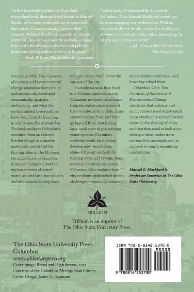 Columbus, Ohio: Two Centuries of Business and Environmental Change examines how a major midwestern city developed economically, spatially, and socially, and what the environmental consequences have been, from its founding in 1812 to near the present day. The book analyzes Columbus's evolution from an isolated frontier village to a modern metropolis, one of the few thriving cities in the Midwest. No single factor explains the history of Columbus, but the implementation of certain water-use and land-use policies, and interactions among those policies, reveal much about the success of the city. Precisely because they lived in a midsize, midwestern city, Columbus residents could learn from the earlier experiences of their counterparts in older, larger coastal metropolises, and then go beyond them. Not having large sunk costs in pre-existing water systems, Columbus residents could, for instance, develop new, world-class, state-of-the-art methods for treating water and sewage, steps essential for urban expansion. Columbus, Ohio explores how city residents approached urban challenges-especially economic and environmental ones-and how they solved them. Columbus, Ohio: Two Centuries of Business and Environmental Change concludes that scholars and policy makers need to pay much more attention to environmental issues in the shaping of cities, and that they need to look more closely at what midwestern metropolises accomplished, as opposed to simply examining coastal cities.