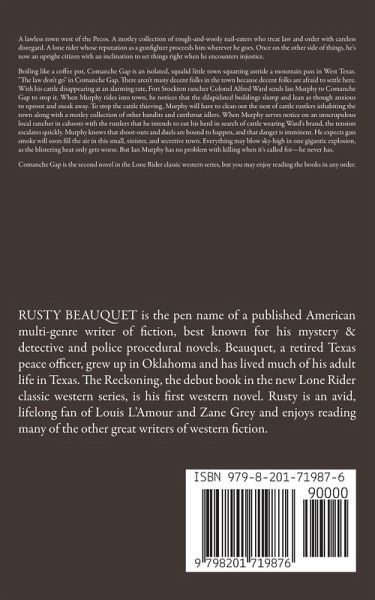 A lawless town west of the Pecos. A motley collection of rough-and-wooly nail-eaters who treat law and order with careless disregard. A lone rider whose reputation as a gunfighter proceeds him wherever he goes. Once on the other side of things, he's now an upright citizen with an inclination to set things right when he encounters injustice. Boiling like a coffee pot, Comanche Gap is an isolated, squalid little town squatting astride a mountain pass in West Texas. "The law don't go" in Comanche Gap. There aren't many decent folks in the town because decent folks are afraid to settle here. With his cattle disappearing at an alarming rate, Fort Stockton rancher Colonel Alfred Ward sends Ian Murphy to Comanche Gap to stop it. When Murphy rides into town, he notices that the dilapidated buildings slump and lean as though anxious to uproot and sneak away. To stop the cattle thieving, Murphy will have to clean out the nest of cattle rustlers inhabiting the town along with a motley collection of other bandits and cutthroat idlers. When Murphy serves notice on an unscrupulous local rancher in cahoots with the rustlers that he intends to cut his herd in search of cattle wearing Ward's brand, the tension escalates quickly. Murphy knows that shoot-outs and duels are bound to happen, and that danger is imminent. He expects gun smoke will soon fill the air in this small, sinister, and secretive town. Everything may blow sky-high in one gigantic explosion, as the blistering heat only gets worse. But Ian Murphy has no problem with killing when it's called for-he never has. Comanche Gap is the second novel in the Lone Rider classic western series, but you may enjoy reading the books in any order.