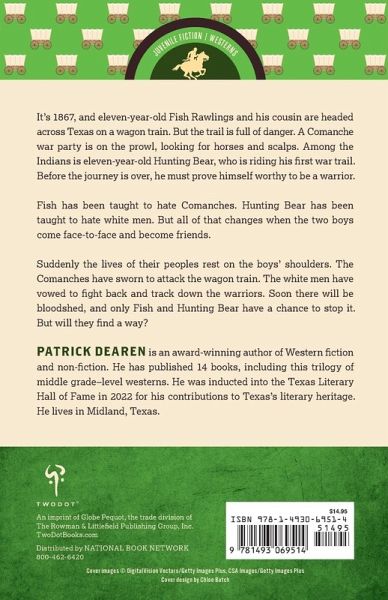 It's 1867 and eleven-year-old Fish Rawlings and his cousin are headed across Texas on a wagon train. But the trail is full of danger. A Comanche war party is on the prowl, looking for horses and scalps. Among the Indians is eleven year old Hunting Bear, who is riding his first war trail. Before the journey is over, he must prove himself worthy to be a warrior. Fish has been taught to hate Comanches. Hunting Bear has been taught to hate white men. But all of that changes when the two boys come face to face and become friends. Suddenly the lives of their peoples rest on the boys' shoulders. The Comanches have sworn to attack the wagon train. The white men have vowed to fight back and track down the warriors. Soon there will be bloodshed, and only Fish and Hunting Bear have a chance to stop it. But will they find a way?
