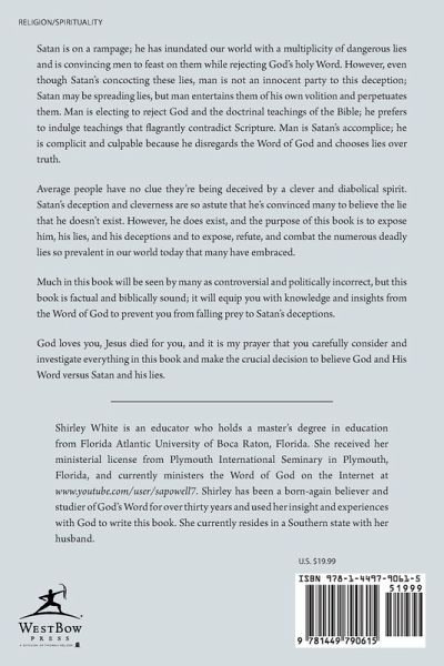 Satan is on a rampage; he has inundated our world with a multiplicity of dangerous lies and is convincing men to feast on them while rejecting God's holy Word. However, even though Satan's concocting these lies, man is not an innocent party to this deception; Satan may be spreading lies, but man entertains them of his own volition and perpetuates them. Man is electing to reject God and the doctrinal teachings of the Bible; he prefers to indulge teachings that ¿agrantly contradict Scripture. Man is Satan's accomplice; he is complicit and culpable because he disregards the Word of God and chooses lies over truth. Average people have no clue they're being deceived by a clever and diabolical spirit. Satan's deception and cleverness are so astute that he's convinced many to believe the lie that he doesn't exist. However, he does exist, and the purpose of this book is to expose him, his lies, and his deceptions and to expose, refute, and combat the numerous deadly lies so prevalent in our world today that many have embraced. Much in this book will be seen by many as controversial and politically incorrect, but this book is factual and biblically sound; it will equip you with knowledge and insights from the Word of God to prevent you from falling prey to Satan's deceptions. God loves you, Jesus died for you, and it is my prayer that you carefully consider and investigate everything in this book and make the crucial decision to believe God and His Word versus Satan and his lies.