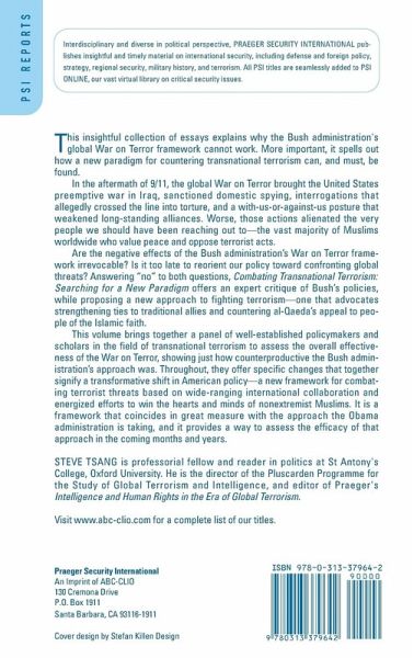 An insightful collection of essays that explains why the global war on terror framework cannot work and how a new paradigm in countering transnational terrorism can be found. Are the negative effects of the Bush administration's "Global War on Terror" framework irrevocable? Is it too late to reorient our policy toward confronting global threats? Answering "no" to both questions, Steven Tsang's Combating Transnational Terrorism: Searching for a New Paradigm offers an expert critique of Bush's policy while proposing a new approach to fighting terrorism-one that advocates strengthening ties to traditional allies and countering Al Qaeda's appeal to people of the Islamic faith. Combating Transnational Terrorism brings together a panel of well-established experts to assess the overall effectiveness of the "Global War on Terror," showing just how counterproductive the Bush administration's approach has been. Throughout, they offer specific changes that together signify a transformative shift in American policy. What they propose is a new framework for combating terrorist threats based on wide-ranging international collaboration and energized efforts to win the hearts and minds of non-extremist Muslims-a framework that coincides in great measure with the approach the Obama administration is taking.