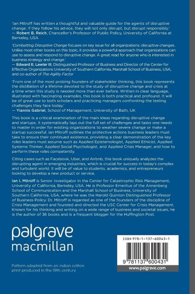This book is a critical examination of the main ideas regarding disruptive change and startups. It systematically lays out the full set of challenges and tasks one needs to master in order for existing organizations to weather severe change or make a startup successful. Ian Mitroff outlines the protective actions business leaders must take to ensure their continued existence, providing a clear demonstration of the key roles leaders must assume such as Applied Epistemologist, Applied Ethicist, Applied Systems Thinker, Applied Social Psychologist, and Applied Crisis Manager, and how to perform these roles competently.