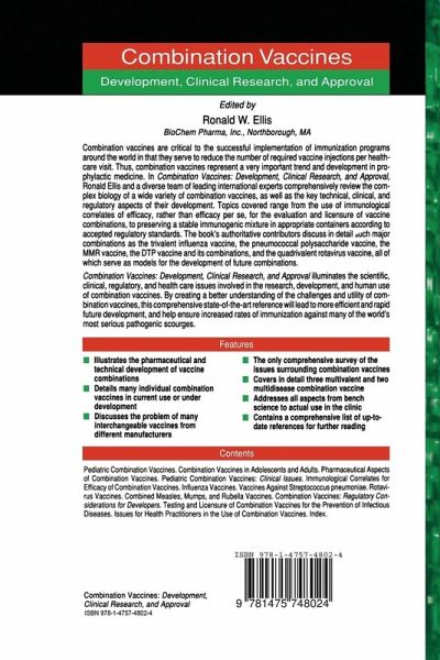 A diverse team of leading experts comprehensively review the complex biology of a wide variety of vaccine combinations, as well as the technical, clinical, and regulatory aspects of their development. Topics covered range from the use of immunological correlates of efficacy, rather than efficacy per se, for the evaluation and licensure of vaccine combinations, to preserving a stable immunogenic mixture in appropriate containers according to accepted regulatory standards. Discussed in detail are the trivalent influenza vaccine, the pneumococcal polysaccharide vaccine, the MMR vaccine, the DTP vaccine and its combinations, and the quadrivalent rotavirus vaccine, all of which serve as models for the development of future combinations. Combination Vaccines: Development, Clinical Research, and Approval illuminates all the scientific, clinical, regulatory, and health care issues involved in the research, development, and human use of combination vaccines.