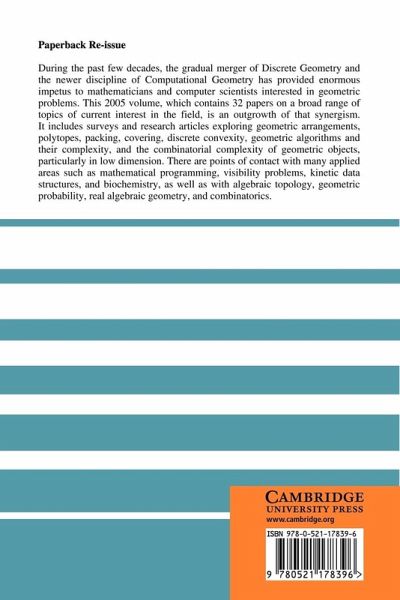 During the past few decades, the gradual merger of Discrete Geometry and the newer discipline of Computational Geometry has provided enormous impetus to mathematicians and computer scientists interested in geometric problems. This 2005 volume, which contains 32 papers on a broad range of topics of interest in the field, is an outgrowth of that synergism. It includes surveys and research articles exploring geometric arrangements, polytopes, packing, covering, discrete convexity, geometric algorithms and their complexity, and the combinatorial complexity of geometric objects, particularly in low dimension. There are points of contact with many applied areas such as mathematical programming, visibility problems, kinetic data structures, and biochemistry, as well as with algebraic topology, geometric probability, real algebraic geometry, and combinatorics.
