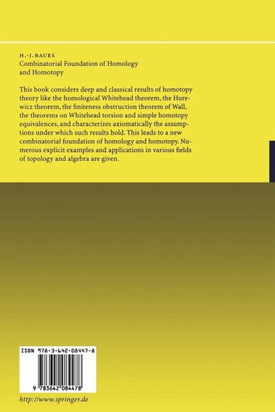 In this book we consider deep and classical results of homotopy theory like the homological Whitehead theorem, the Hurewicz theorem, the finiteness obstruction theorem of Wall, the theorems on Whitehead torsion and simple homotopy equivalences, and we characterize axiomatically the assumptions under which such results hold. This leads to a new combinatorial foundation of homology and homotopy. Numerous explicit examples and applications in various fields of topology and algebra are given.