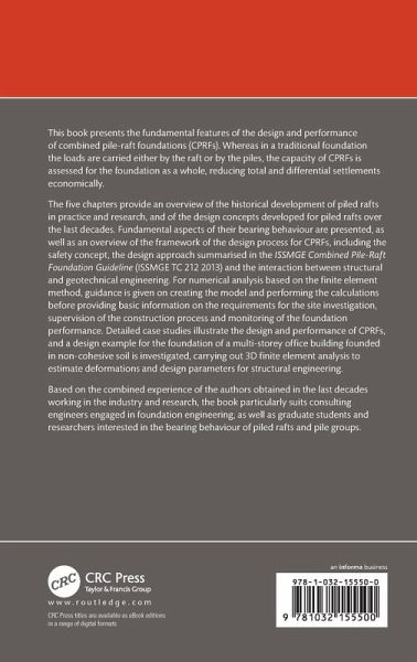 This book presents the fundamental features of the design and performance of combined pile-raft foundations, the capacities of which are assessed for the foundation as a whole, reducing total and differential settlements economically. It includes numerical studies, in-situ measurements, and detailed case studies.